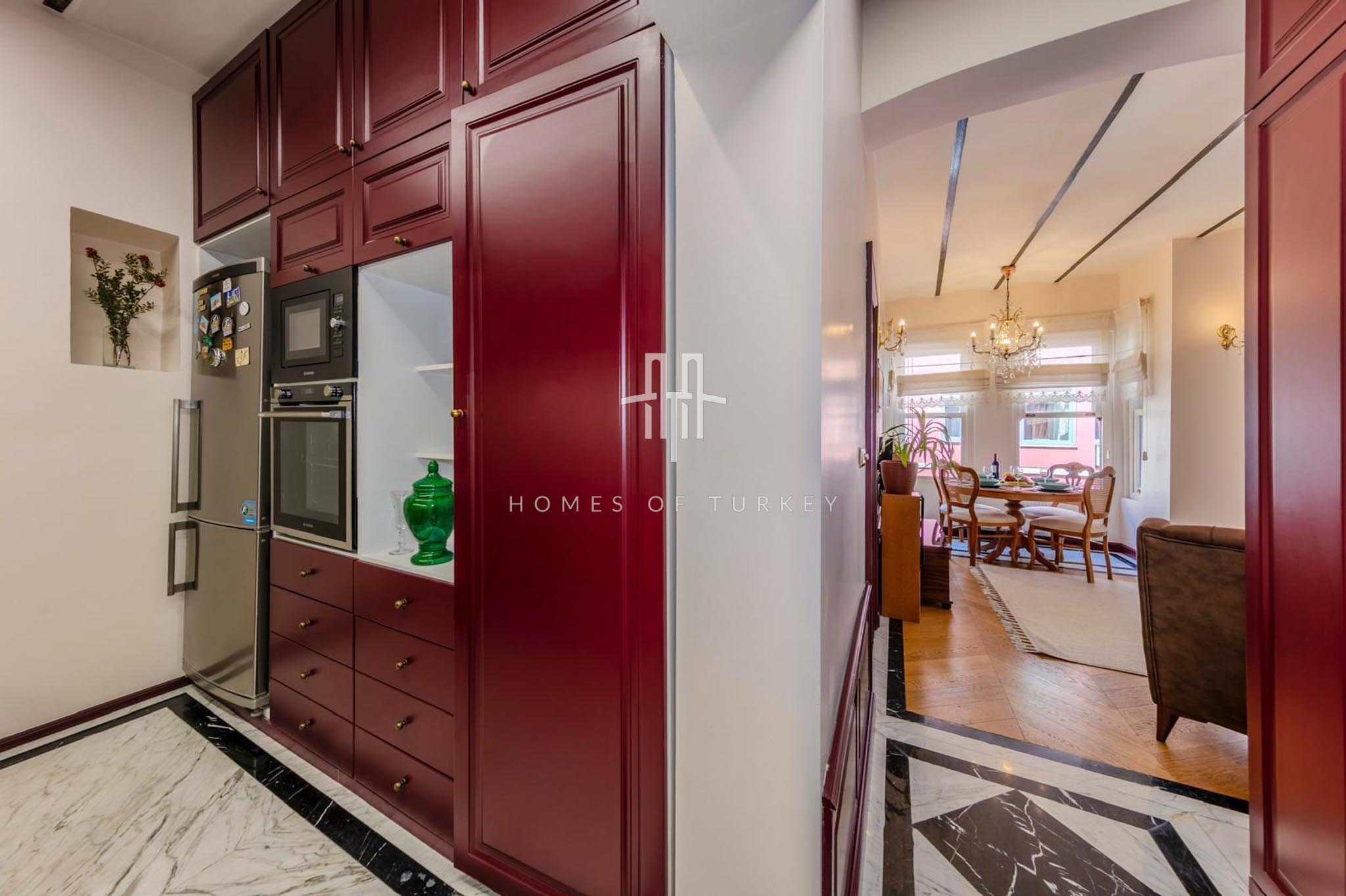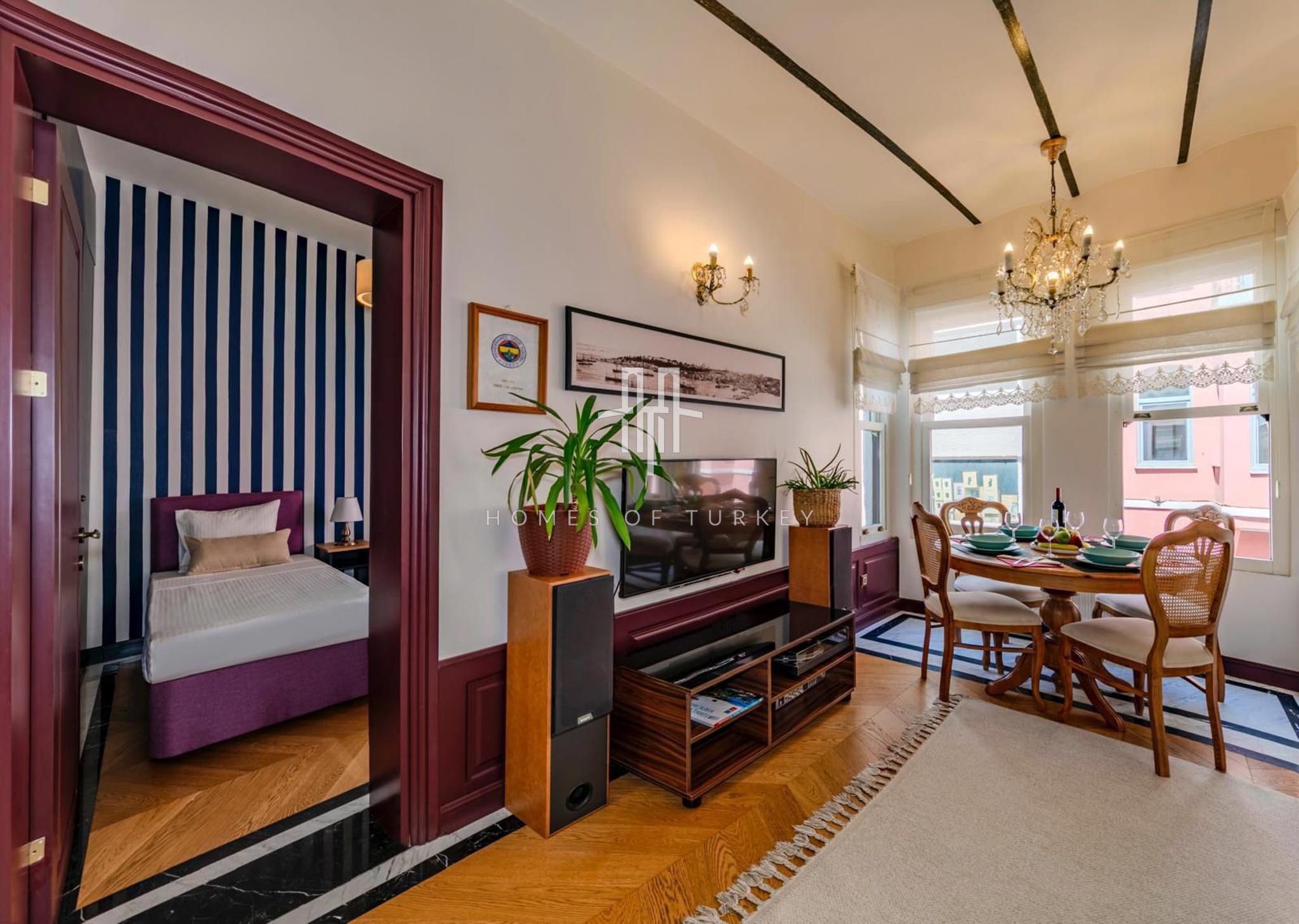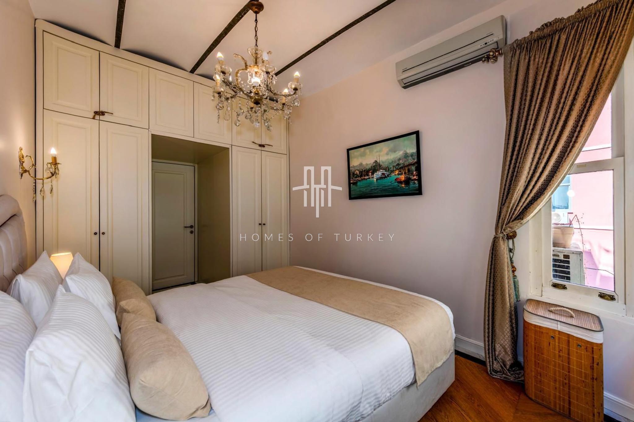 2+1 Apartment for sale in a historic building in Beyoğlu in Istanbul, suitable for citizenship and Airbnb applications. Located in the Galata district of Beyoğlu on the European side of Istanbul, Galata is the heart of the city, blending history with modern life. Its narrow stone streets, breathtaking views, and proximity to the iconic Galata Tower make it a rare location offering both residential and investment opportunities. This neighborhood in Beyoğlu is a vibrant center surrounded by modern living spaces in restored historic buildings, cafes, boutique shops, cultural venues, and restaurants, radiating life at every turn. Its proximity to the Golden Horn and the Bosphorus provides excellent city connections, with easy access to public transport, İstiklal Street, and Taksim Square. Galata’s architecture blends its deep-rooted historical fabric from the Genoese period with modern trends, offering a prestigious living atmosphere, and properties in the area have long-term appreciation potential.
