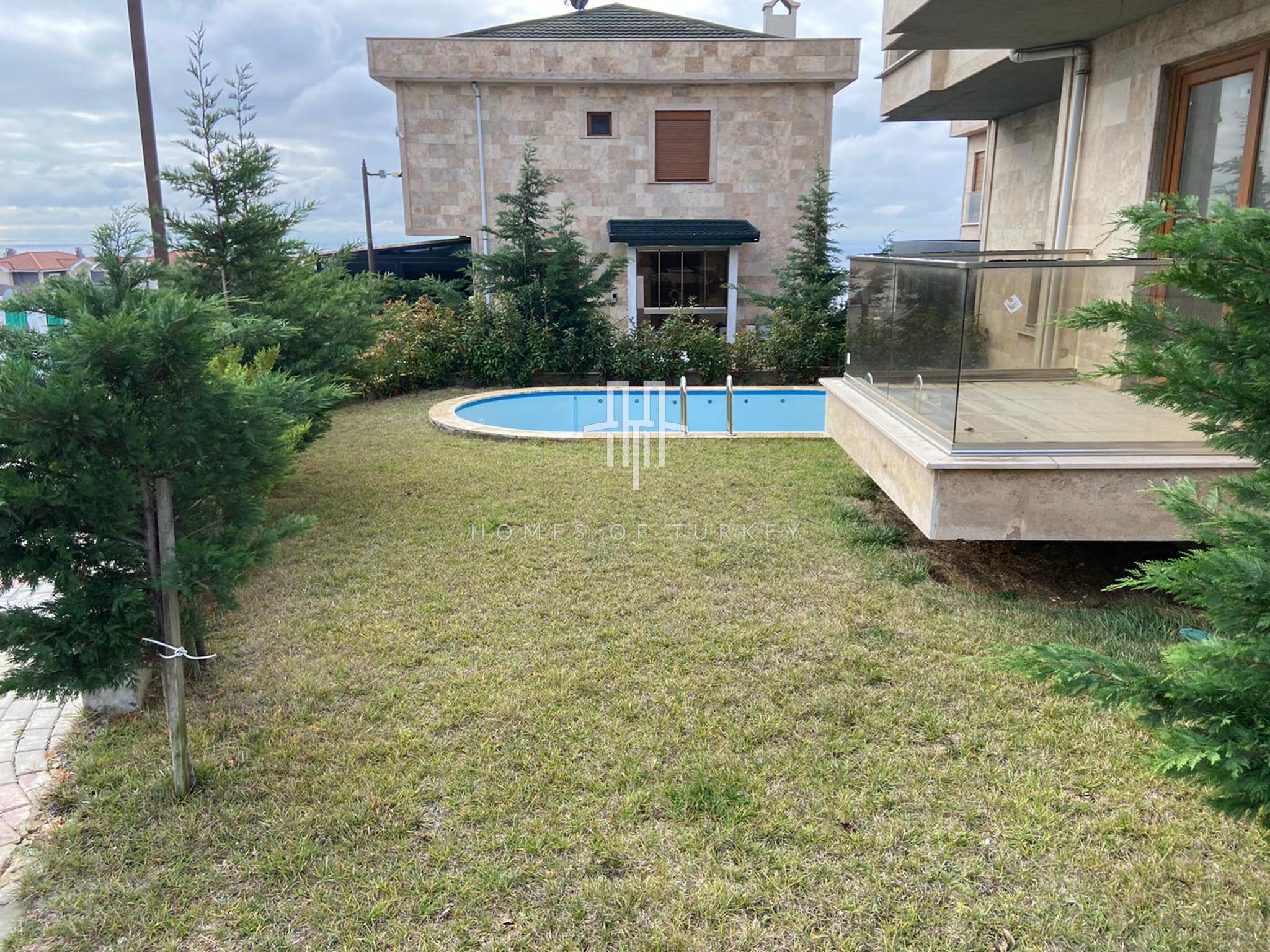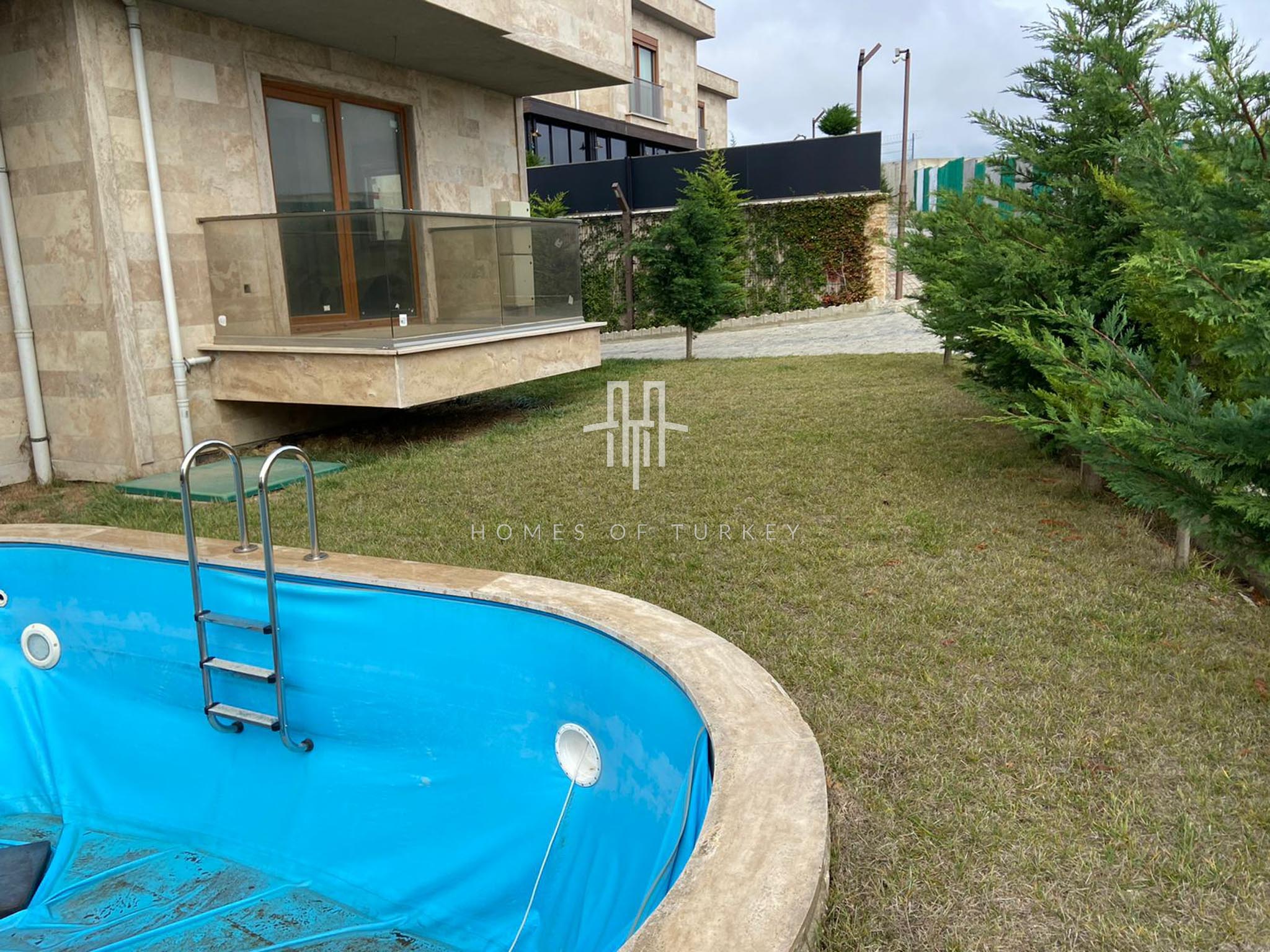 3+1 triplex villa with private pool for sale in Büyükçemece in Istanbul, eligible for citizenship, is located on the European side. Büyükçekmece is a district distinguished by its extensive coastline, modern living spaces, and tranquil atmosphere. Located on the Sea of Marmara, Büyükçekmece Beach, with its long walking and cycling paths, is a popular summer destination in Istanbul. Its extensive green spaces, well-organized layout, and residential projects featuring villas and modern residential complexes make it a valuable area for both family living and investment. Its proximity to major transportation routes such as the TEM and E5 highways provides a strong connection to the city center. With its modern cultural centers, fairgrounds, and social amenities, Büyükçekmece is a special district that combines peaceful living with city comfort.